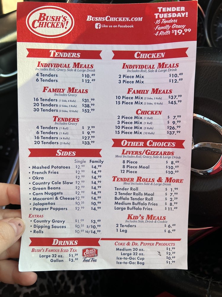 Introducing Bush's Chicken, a chicken wings haven located at 3219 SW Military Dr in San Antonio, TX. Offering delivery, takeout, reservation options, and accepting credit cards, this casual spot is perfect for groups and families with outdoor seating and waiter service available. The menu features crispy tenders loved by even tender connoisseurs like Leonor C.'s son, along with perfectly salted fries, gravy, and bread. Customers rave about the excellent service and great food, with Jeremy E. praising the manager for always ensuring a pleasant dining experience. The friendly staff at Bush's Chicken truly elevate the overall dining experience, making it a must-visit for chicken lovers in San Antonio.